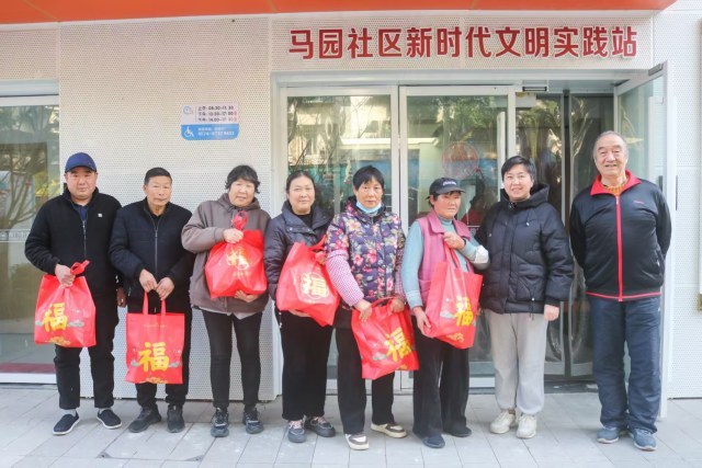 春节临近,马园社区里涌动着一股暖流。85岁的退休老教师张文华推着一辆满载的小推车,缓缓来到社区柳汀新村,为这里六名无法回家过年的保洁员送上一份沉甸甸的“新年心意”。