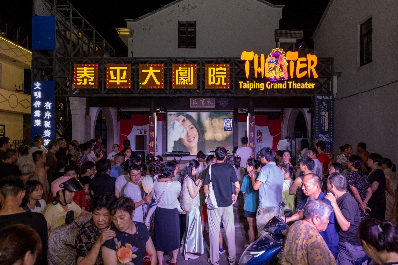 “礼堂星光大道之夜”在铿锵大鼓声中开启,百米红毯铺就百姓舞台,村民、游客争相打卡留影。露天影院放映经典老片后,卡拉OK环节让村民们有机会登台一展歌喉。