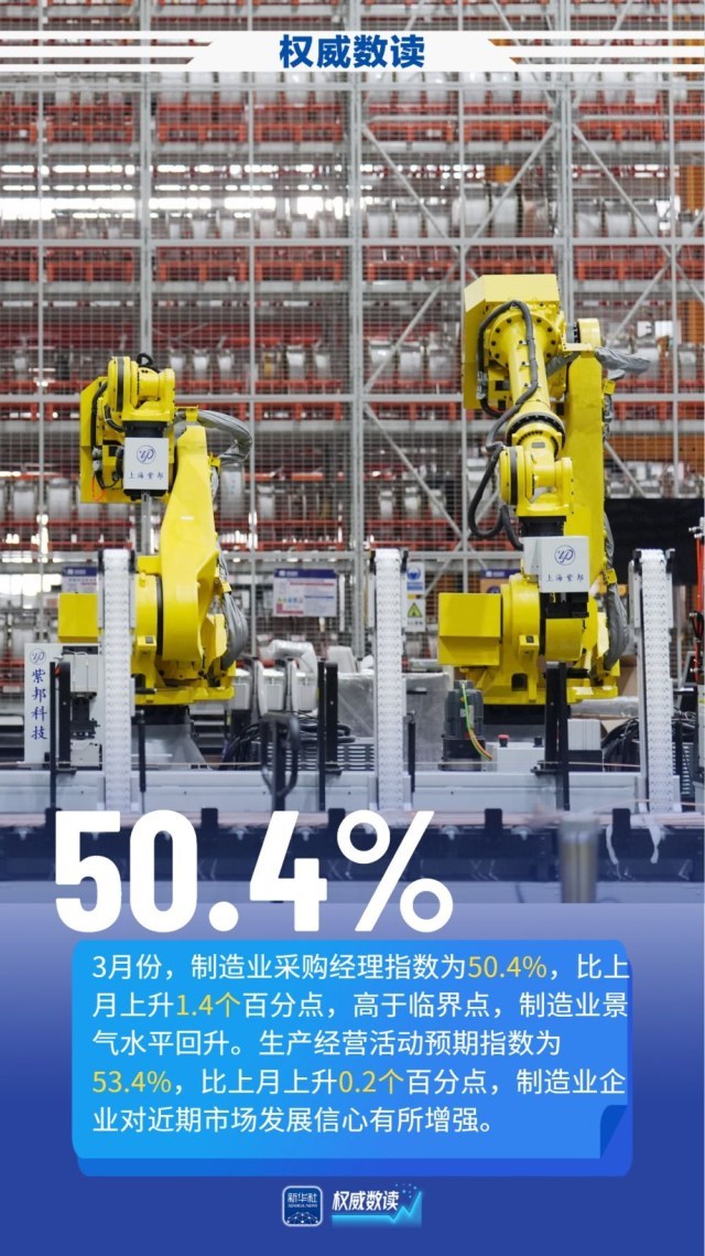 ▲ 3月份中国制造业采购经理指数升至50.4% ,我国经济景气水平回升向好。