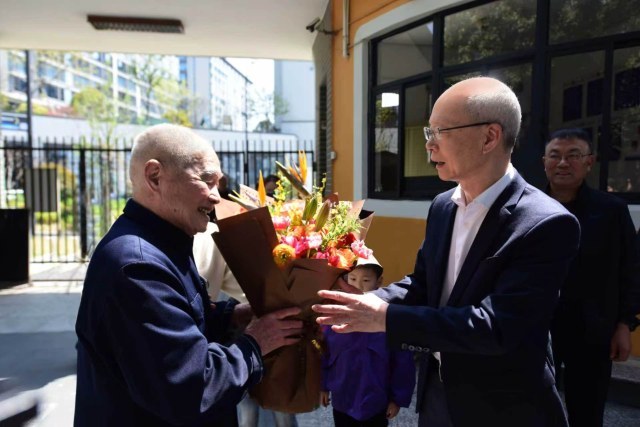 “王爷爷好!王爷爷好!”春日午后,宁海兴华幼儿园的孩子们像一群欢快的小鸟,涌向一位白发老人。老人弯下腰,孩子们的小手拉住了他那双布满皱纹的手。这位被稚嫩童声包围着的老人叫王春文,今年已经98岁,他笑眯眯地看着孩子们,眼神里满是慈爱。