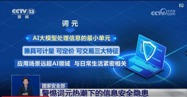 ▲ 国家安全部发布安全提示:警惕词元热潮下的信息安全隐患。
