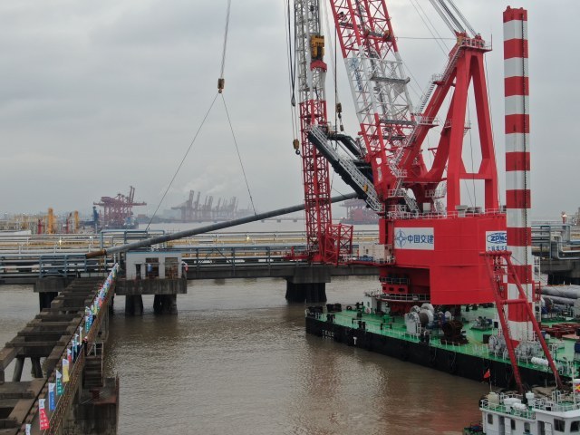 项目预计明年1月迎来交工验收,建成后,将直接服务北仑霞浦临港产业区,同时,为后方中哲高端新材料项目提供关键原材料物流保障。徐晓峰说:“他要做高端合成橡胶的,汽车轮胎一类的,那么他上游产品就要通过进口到我们码头上,通过管道运到后方的中哲这个企业。”