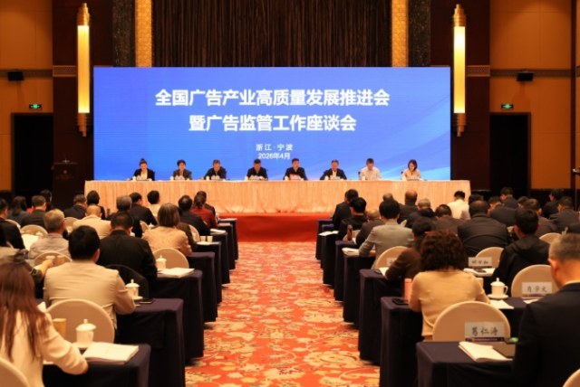 ▲全国广告产业高质量发展推进会暨广告监管工作座谈会在甬举行,白清元、汤飞帆致辞。