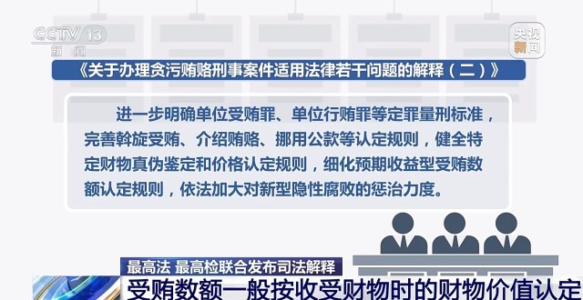 ▲ “两高”联合发布司法解释,加大对新型隐性腐败惩治力度。