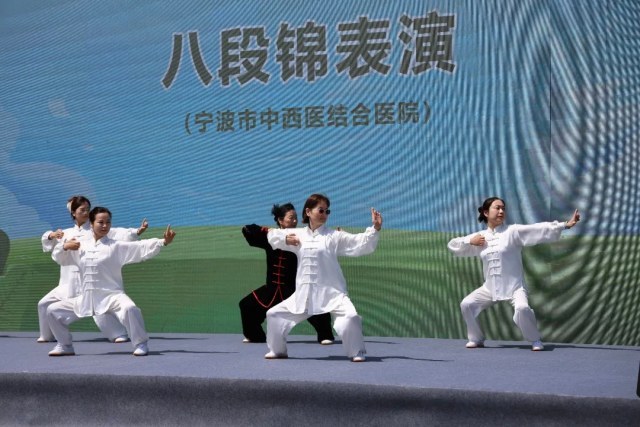 宁波市中西医结合医院的医护人员带领全场共练网红养生操“八段锦”,现场群众踊跃跟学,气氛热烈;随后,“疫苗知识趣味闯关游戏”将健康知识融入运球竞技中,选手需选出对应疫苗的皮球,穿越障碍完成任务,在欢笑中记住了流感疫苗、麻腮风疫苗、HPV疫苗的关键知识。华泰小学健美操队带来的《跳出你的节拍,跳出健康》展现了青少年积极向上的精神风貌;最后的“健康知识问答环节”更是将现场氛围推向高潮,通过提问抢答的形式,普及了乙肝疫苗接种程序、麻腮风疫苗首剂月龄、百白破疫苗预防疾病、接种后留观时间等常见问题。其中,“老年人最推荐接种的三大疫苗(流感、23价肺炎、带状疱疹)”和“HPV疫苗可预防宫颈癌”等,精准回应了不同年龄段的健康关切。