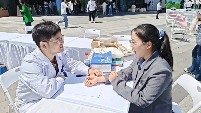 活动现场还设置了健康咨询台、疫苗知识展板及互动问答区。不少市民带着孩子前来咨询流感、麻腮风、HPV疫苗等热点问题。一位家长表示:“以前总觉得打疫苗是孩子的事,今天才更清楚地认识到,成年人尤其是老年人,适时接种流感、肺炎疫苗还有带状疱疹疫苗也同样重要。”值得关注的是,居民们也越来越关注HPV疫苗的相关免疫政策。自2025年11月起,我国已启动为符合条件的适龄女生免费接种国产二价HPV疫苗的工作。这一政策有效提升了适龄女性的疫苗可及性,也推动了宫颈癌防控从“早筛”向“预防”的重心前移。此外,现场还特设了专家义诊区,来自宁波中西医结合医院和我中心15名专家、医生共同为居民提供义诊咨询,解答健康疑问。