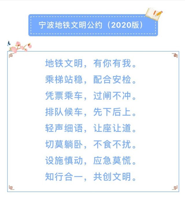 新版《宁波地铁文明公约》发布,64字浓缩市民千余条建议