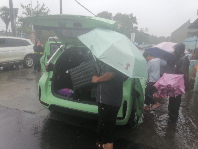 李元邓是80后,老家在山东,来宁波多年,现在是一名网约车司机。“接江北团区委通知,孔浦路林村有50多名群众被困,希望能有救援力量将群众转移到甬江实验学校安置点。”7月25日中午,看到群里消息弹出来的那一刻,李元邓的心“咯噔”一下,赶紧就举手报了名。“我知道那个村,就在海鲜市场旁边。”送完手头这一单,李云邓立刻下了线。风大雨大,小路肯定是不能走的,李元邓换了一条大路,20来分钟后开到了村里。