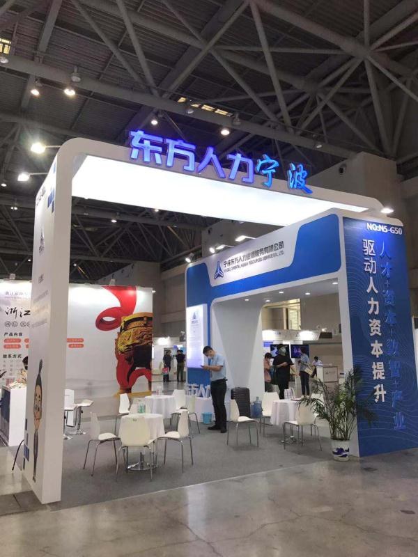 宁波国家级产业园展区以“书藏古今、港通天下”为主体造型,全方位、深层次地展示了宁波人力资源服务业的硬核力量。以东方为代表的四家企业,展位统一展现“宁波”标志,主体造型由两个交织的“人”构成,表达了“人才交汇”的主题。璇玑大数据作为浙江省参加大会路演的两家代表机构之一,充分展现其在人力资源产业与科技相结合的研究成果。